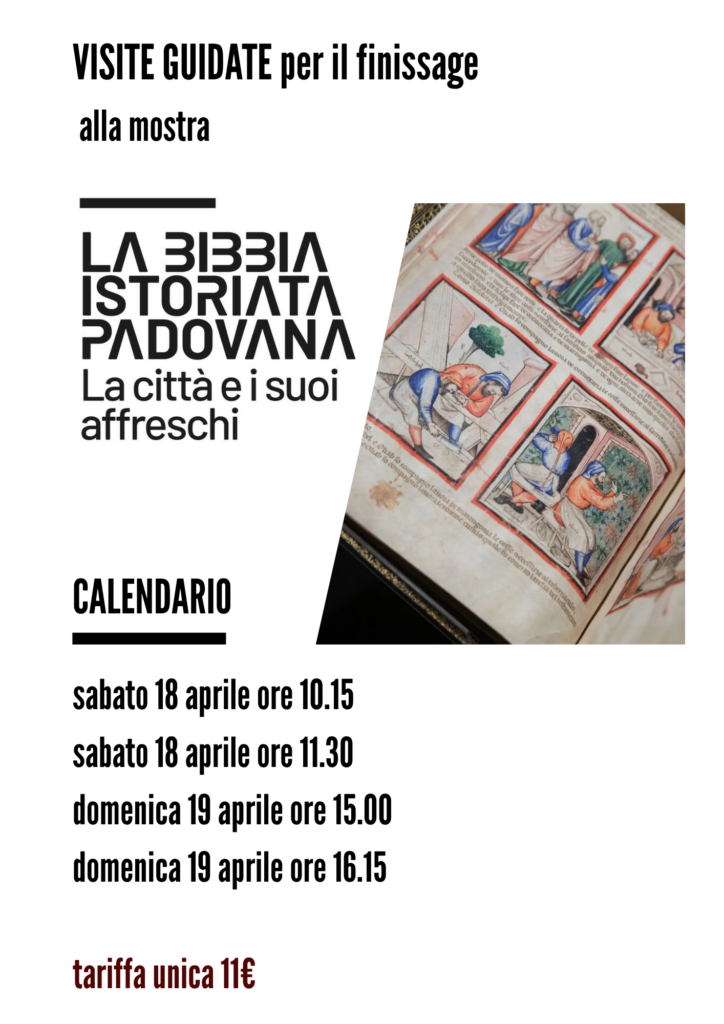 In occasione degli ultimi due giorni di apertura della mostra La Bibbia Istoriata Padovana. La città e i suoi affreschi sono previste le seguenti visite guidate straordinarie: